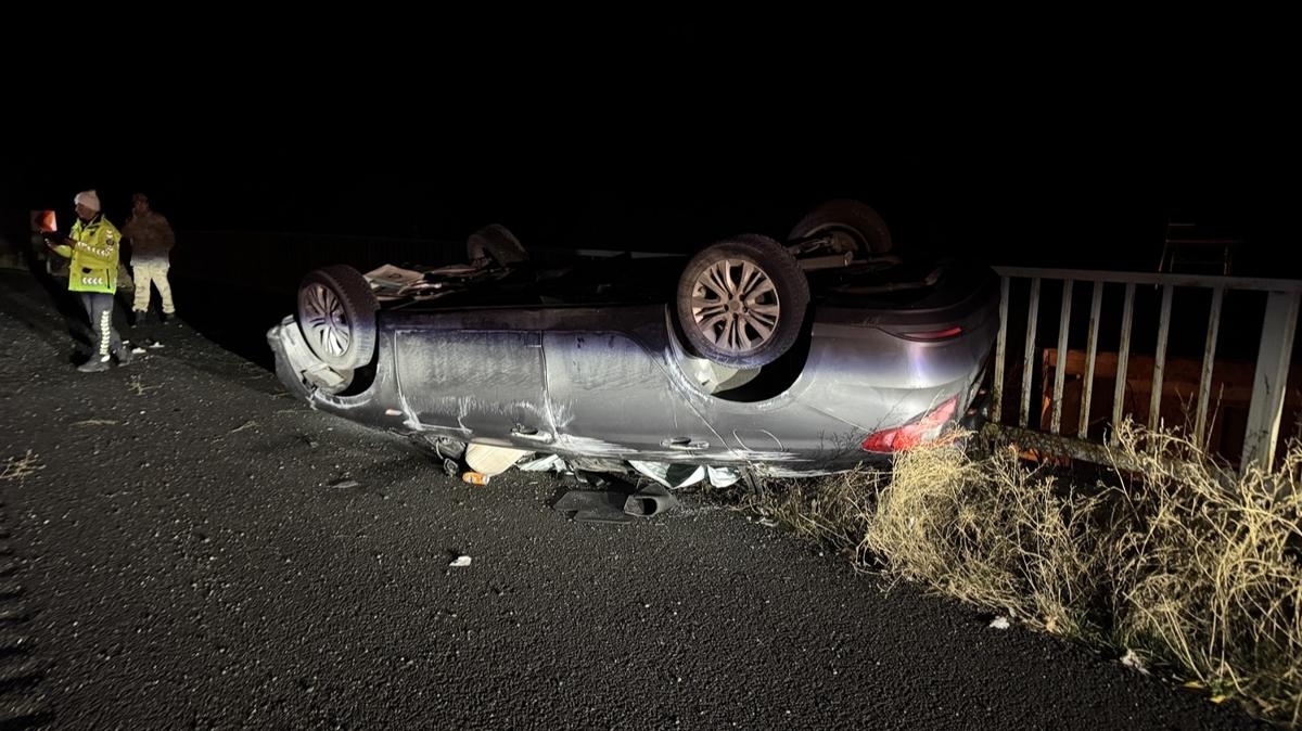 Çarpmanın etkisiyle sürüklenen otomobil, karşı şeritte bariyerlere çarparak durabildi.