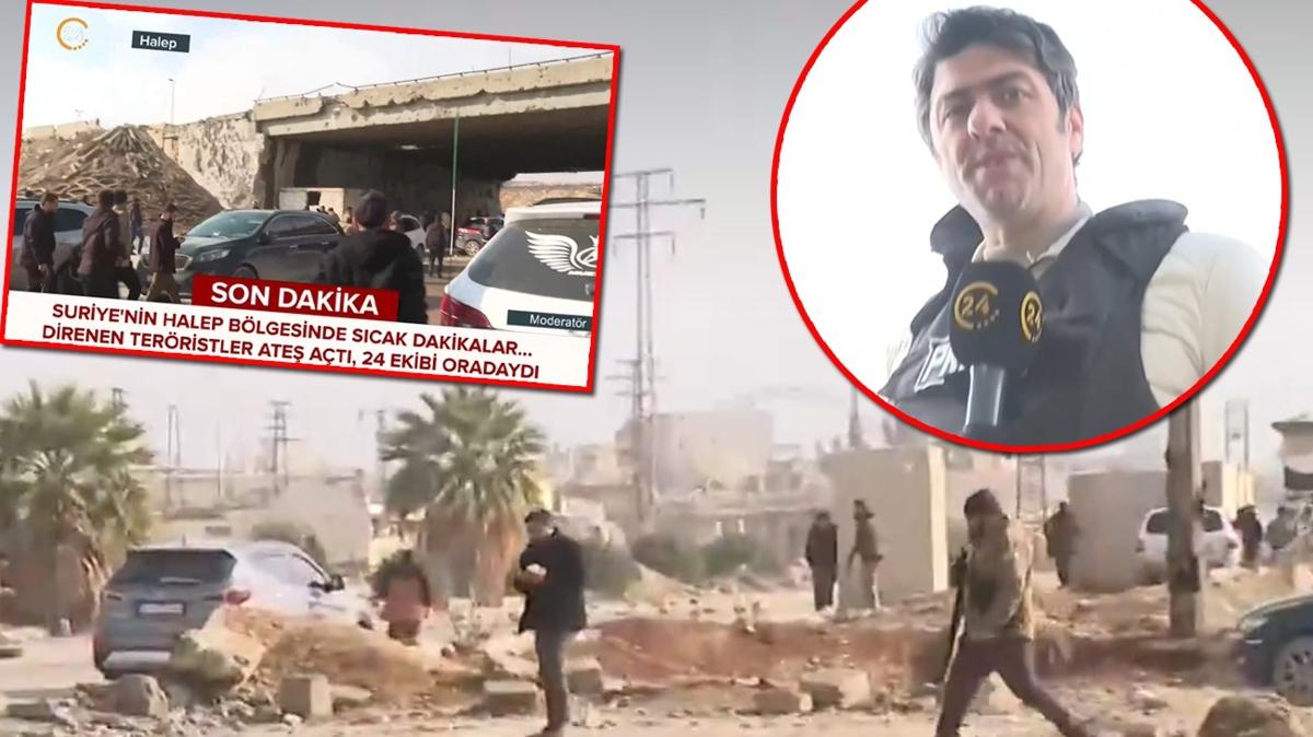 24 Ekibi Halep’te çatışma ortasında kaldı. “Tahliyeye” direnen teröristler ateş açtı. Olay yerinden gelişmeleri aktaran Kurnaz, açıklamasının devamında “Herkes yere yattı şuan. Burası Şeyh Maksud bölgesi. Az önce bir çatışma çıktı. Gitmek istemeyen, ayrılmak istemeyen teröristler var. Teröristler ile Suriye ordusu arasında çatışma devam ediyor. Otobüsler geldi ama koordine bir şeklide alana giremiyorlar. Suriye ordusu güvenliğimiz için alandan çıkmamız istedi. Bulunduğumuz alana teröristlerce ateş açıldı. Şuan burası boşaltılamaya başlandı.” İfadelerini kullandı.