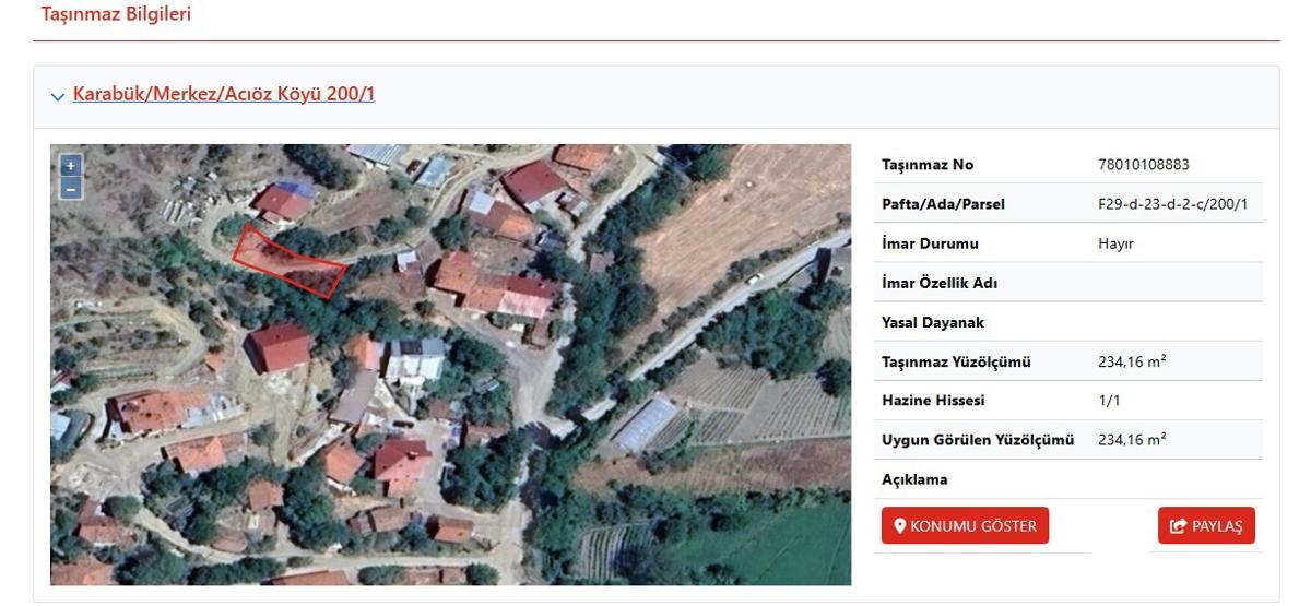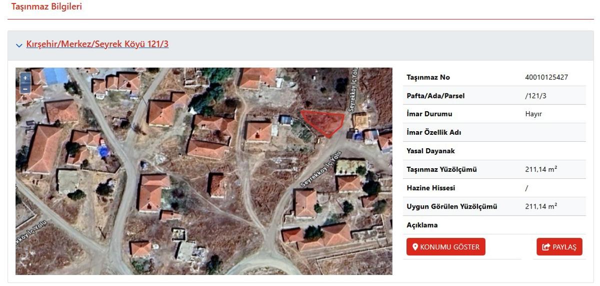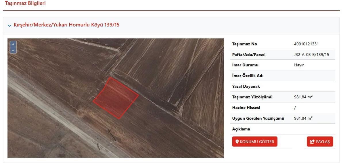 Not: Diğer arsa, tarla, arazi, bağ ve bahçe ilanlarına Milli Emlak Genel Müdürlüğü üzerinden erişim sağlanabilir.